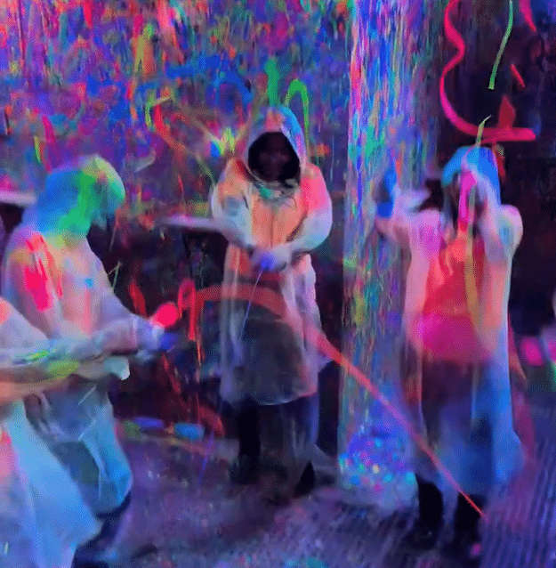 A high-energy space where you can throw, splash, and splatter paint freely—no rules, no mess to clean, just pure creative chaos and stress-relief fun.